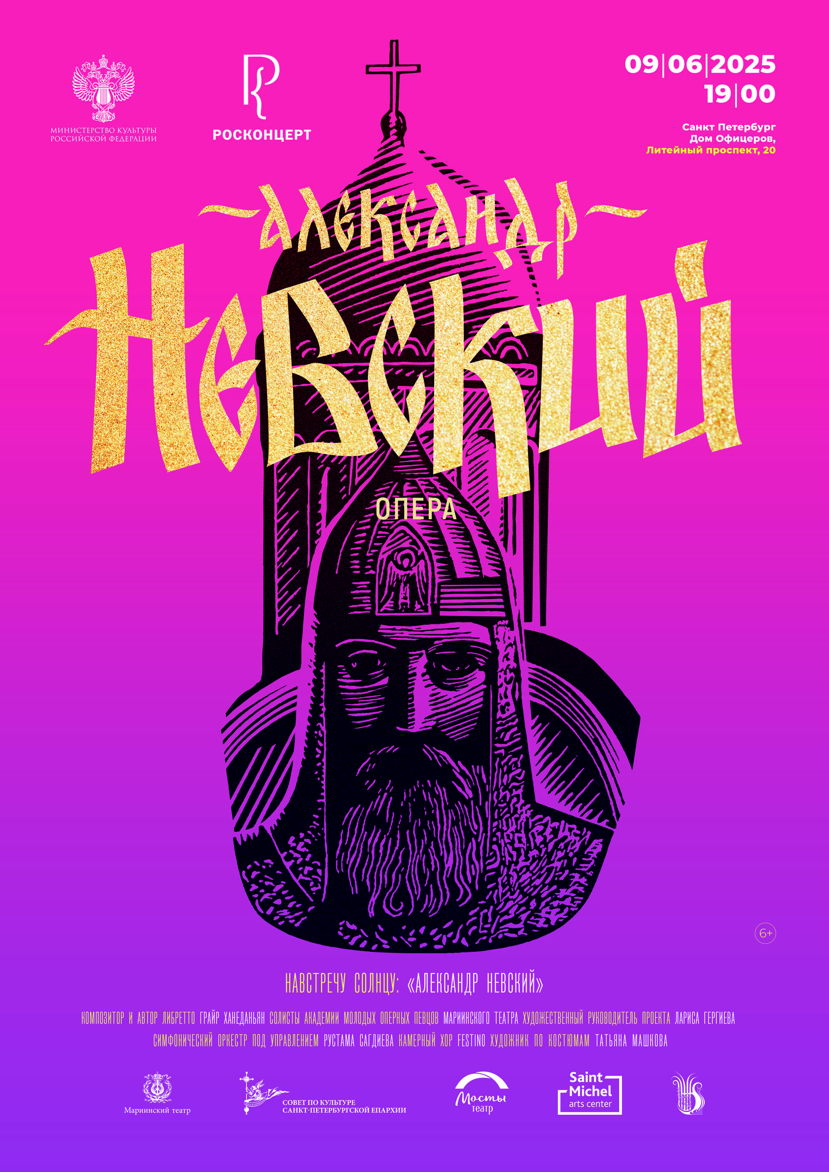 9 июня в Доме офицеров Западного военного округа Министерства обороны РФ в рамках проекта «Навстречу солнцу: Александр Невский» в честь дня рождения великого князя, государственного деятеля, православного святого Александра Ярославича Невского (1221-1263) прозвучит духовная опера «Александр Невский» (6+) советского и российского композитора Грайра Ханеданьяна.